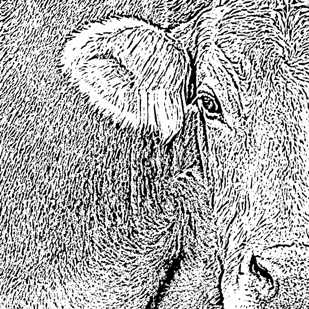 in der serie „tierlinien : dunkelschwarz : lichtweiß“ werden ansichten von tieren auf strukturen und linien reduziert. die besondere ausarbeitung hebt die individualität der unterschiedlichen tiere hervor. fell, pelz, glatte haut oder falten und runzeln, feines oder robustes gefieder.